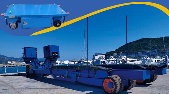 65T重型游艇拖車是由佛山南工車輛制造有限公司研發(fā)團隊研發(fā)生產(chǎn)的一款重型游艇拖車。拖車可實現(xiàn)自行走、轉(zhuǎn)向、升降、水平調(diào)整以及寬度調(diào)節(jié)功能。通過自身行走舉升等功能,托舉起游艇在指定的區(qū)域內(nèi)轉(zhuǎn)運,以及在碼頭區(qū)域?qū)⒂瓮乃嫱现涟渡希驈陌渡蠈⒂瓮н\送至水面。應(yīng)用場合:應(yīng)用于游艇俱樂部、旅游基地、游艇制造廠、船廠等。